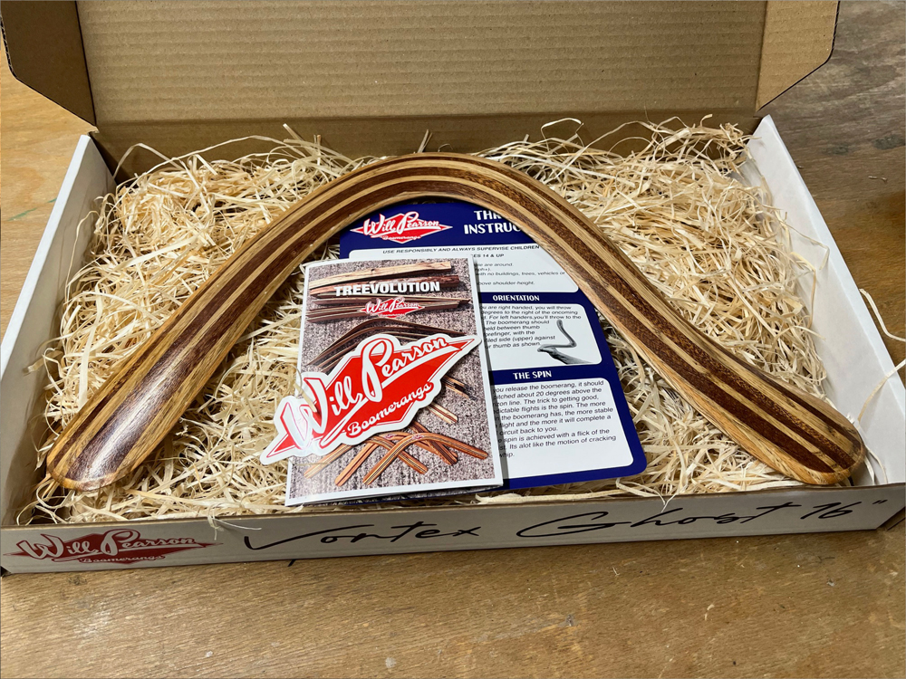 Vortex Ghost 16″ Steam Shaped Double Offset Laminated High Performance Boomerang.